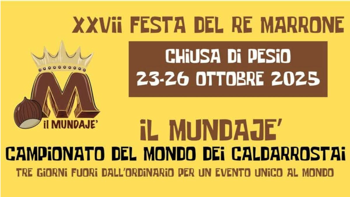 Manca sempre meno a uno degli appuntamenti più attesi dell'autunno piemontese: la 27ª edizione della "Festa del Re Marrone", in programma dal 23 al 26 ottobre a Chiusa di Pesio, nel cuore delle Alpi cuneesi.